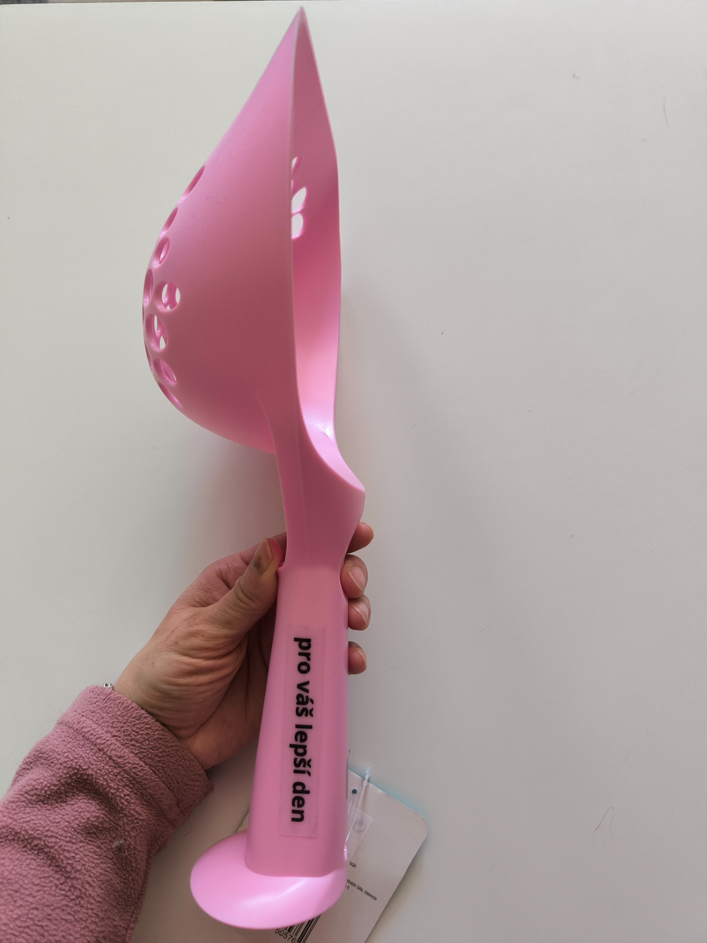 Pastelově růžová kráska s naším logem a sloganem "Pro lepší den". Ano, i vybírání bobků může být pro lepší den. Protože čistý záchodek = spokojená kočka = klidná domácnost = vaše malé každodenní vítězství.